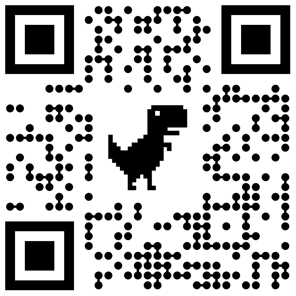 The Dinosaur QR code is a minimalist and nerdy QR code style inspired by the iconic dinosaur from the Google Dinosaur Runner game, famously shown when a browser goes offline. It is designed for developers, tech enthusiasts, and internet-savvy brands that enjoy subtle references to tech culture and playful details.